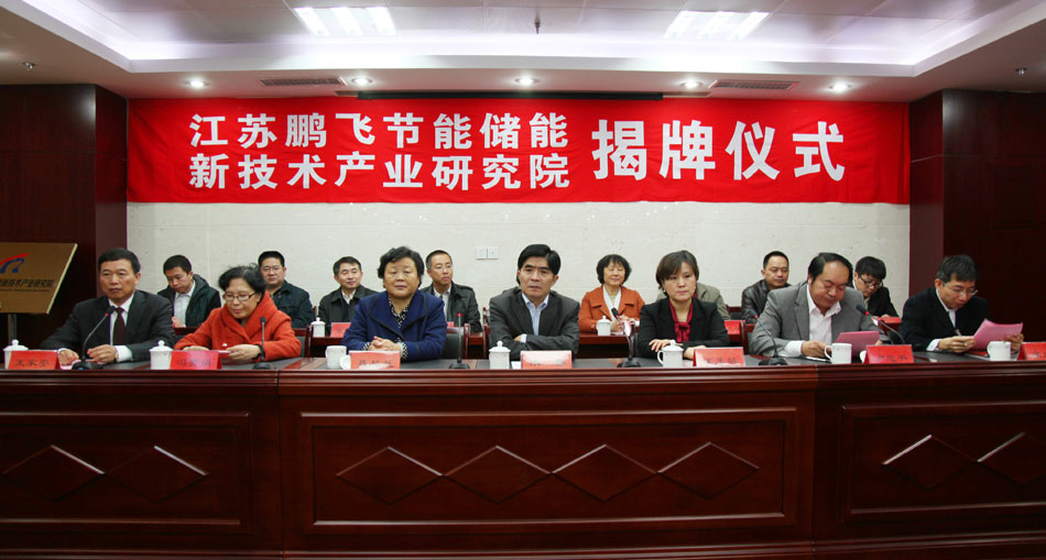 2014年11月29日上午10時(shí),江蘇鵬飛節(jié)能儲(chǔ)能新技術(shù)產(chǎn)業(yè)研究院正式揭牌成立。縣政協(xié)主席朱春、中國建材機(jī)械工業(yè)協(xié)會(huì)常務(wù)副會(huì)長(zhǎng)王玉敏、江蘇省建材行業(yè)協(xié)會(huì)會(huì)長(zhǎng)聶長(zhǎng)蘭,中科院、南京工業(yè)大學(xué)、上海交大、安徽理工、鹽城工專等高校院所的專家教授,縣科技局、人社局等相關(guān)部門負(fù)責(zé)人及部分客商,150多名代表參加了揭牌儀式。副縣長(zhǎng)盧忠平主持了揭牌儀式。