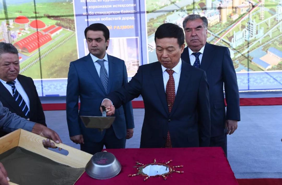 出席奠基儀式的有塔國總統埃莫馬利·拉赫蒙、杜尚別市長魯斯塔姆·艾莫馬利等國家最高領導人,共有300多人出席了該項目的奠基儀式。鵬飛負責該項目的總體設計、機電成套設備、安裝調試、達產達標、生產維護。