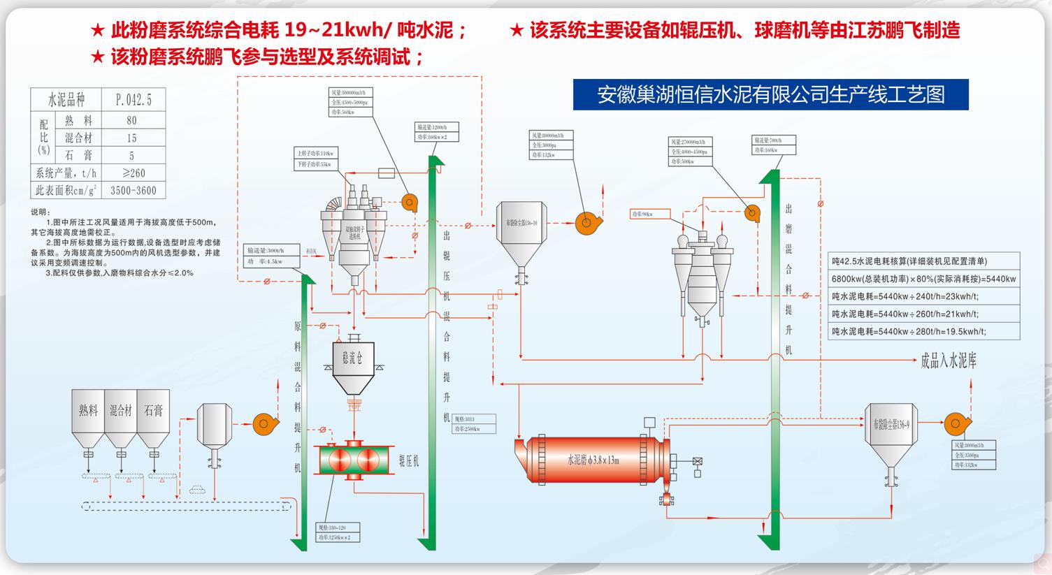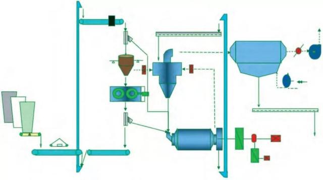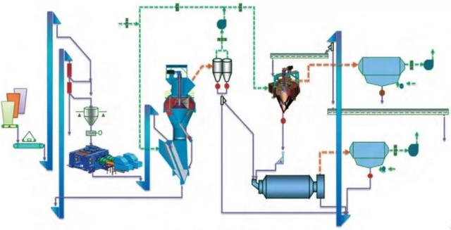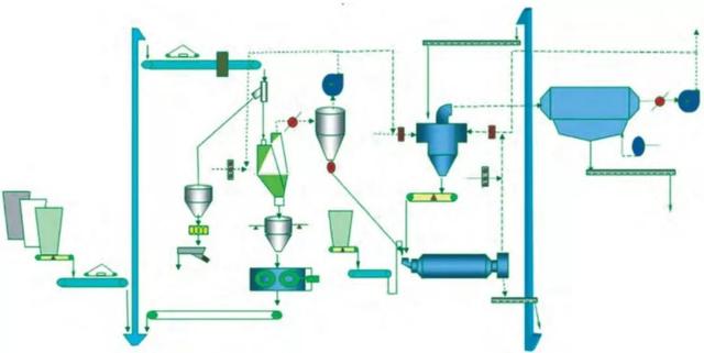 該系統工藝簡單,設備少,維護工作量少,水泥成品全部經過球磨機粉磨,成品粒度分布較寬,水泥性能穩定。